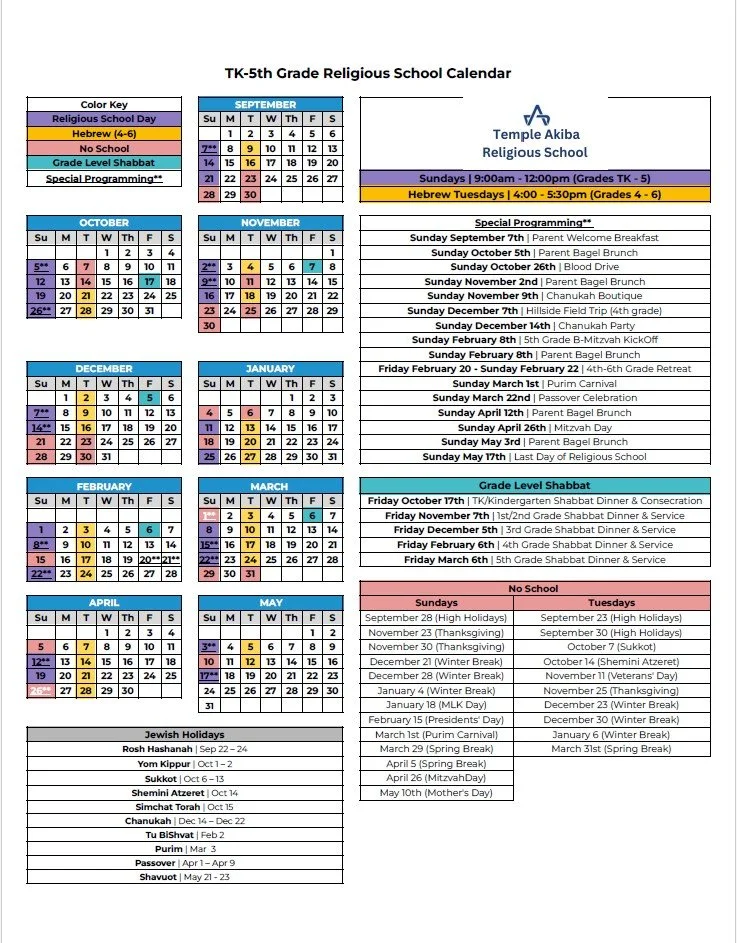 Religious School Calendars TK-5th Grade Religious School Calendar (PDF) 6th-12th Grade Religious School Calendar (PDF)